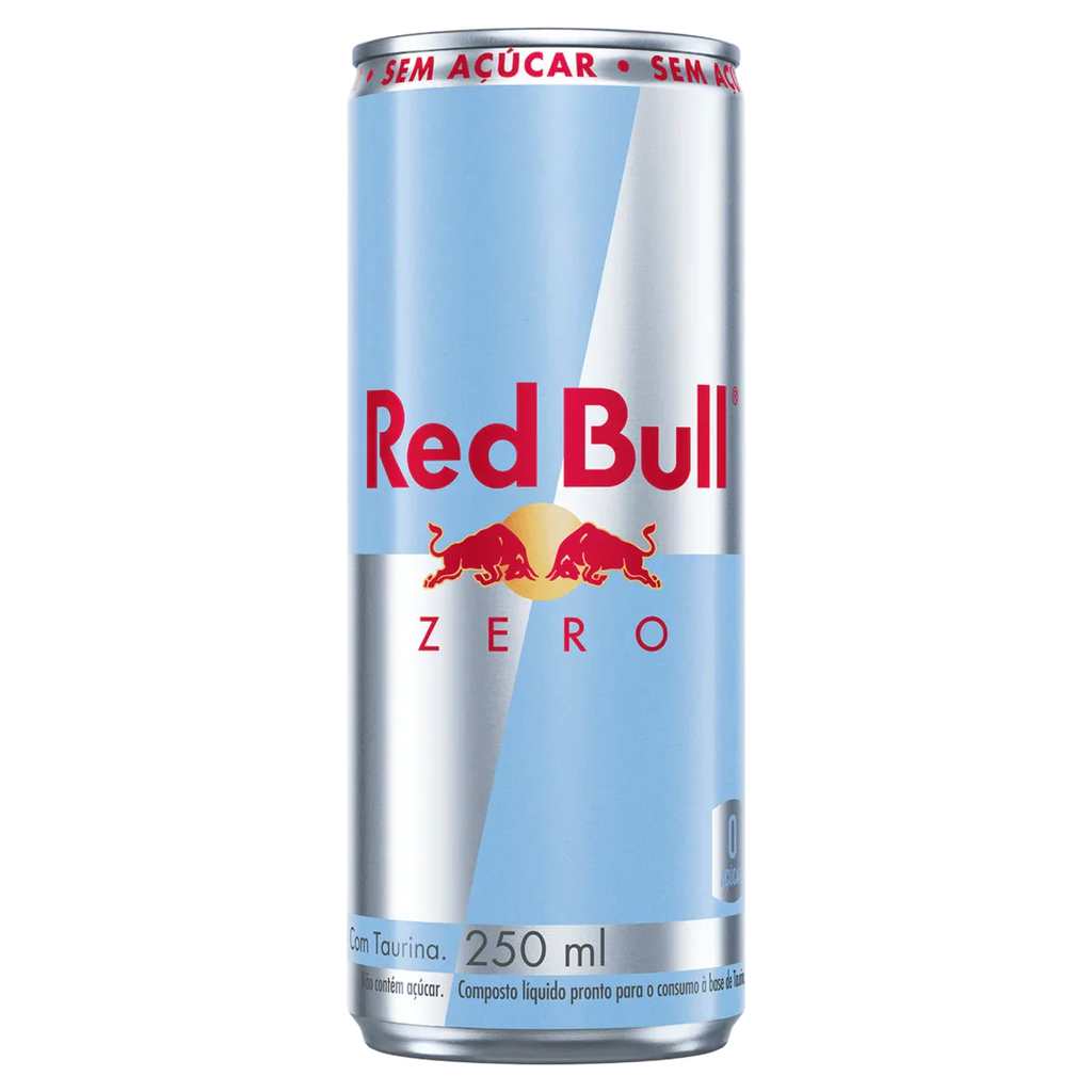 Bebida energética Red Bull Energy Drink Zero com fórmula sem açúcar, desenvolvida para fornecer energia e aumento de concentração sem calorias adicionais. Contém cafeína e outros ingredientes característicos da marca, proporcionando efeito estimulante e sensação de disposição. Lata de 250 ml, indicada para consumo gelada ou quando for necessário um impulso extra de energia.